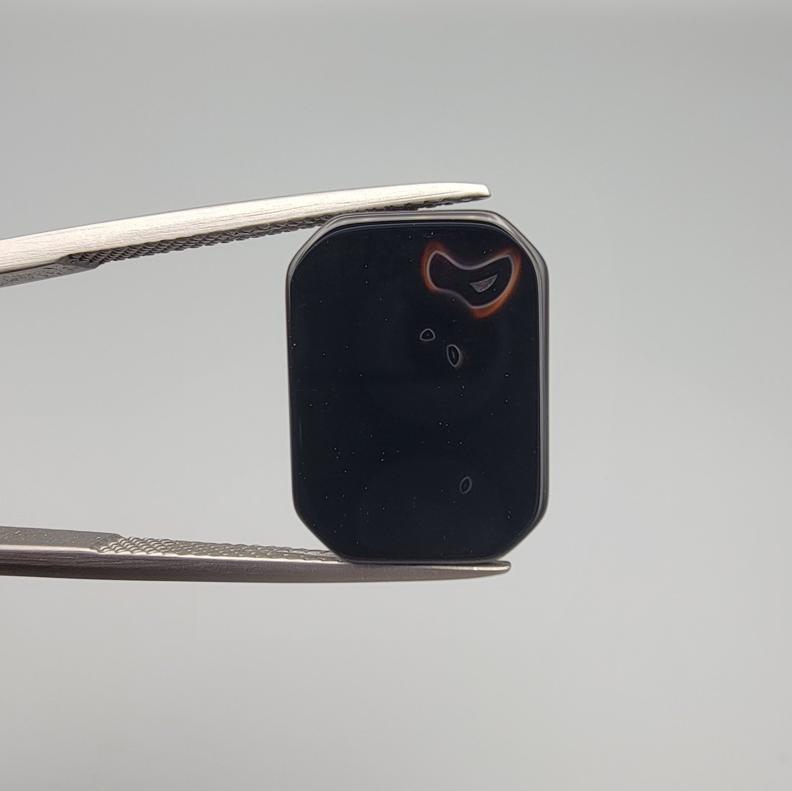Discover a truly one-of-a-kind treasure with this 7.17-carat natural Black Agate, widely revered as Sulemani Aqeeq. This specimen is a collector’s dream, boasting two distinct natural white inclusions on a jet-black background. One side of the stone reveals a charming pair of “bunny ears” 🐰, while the reverse features the classic “eye” formations traditionally sought after for their protective qualities. Masterfully cut into a sleek Rectangular Cabochon with a mirror-like polish, this stone is perfect for a reversible pendant or a significant statement ring that showcases a different natural wonder from every angle.