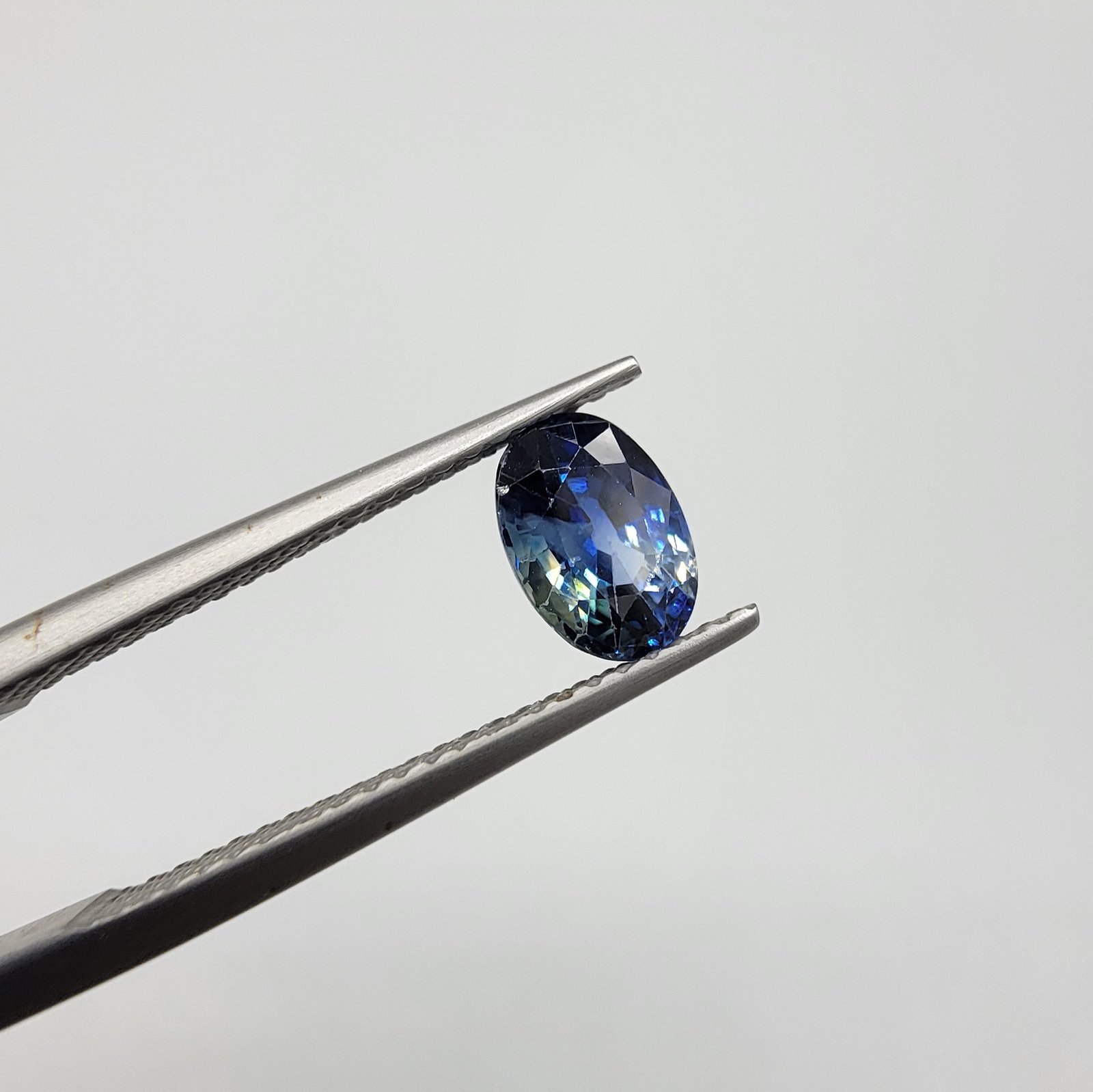 This beautiful Natural Blue Sapphire is a true masterpiece from the prestigious mines of Srilanka (Ceylon). Weighing a precise 1.10 carats, this gemstone boasts a captivating blue color. Expertly cut in a classic oval shape, its brilliant facets showcase its radiance. This near-one-carat gem from a world-renowned origin is an exceptional choice for a delicate engagement ring, pendant, or a valuable addition to any gemstone collection.