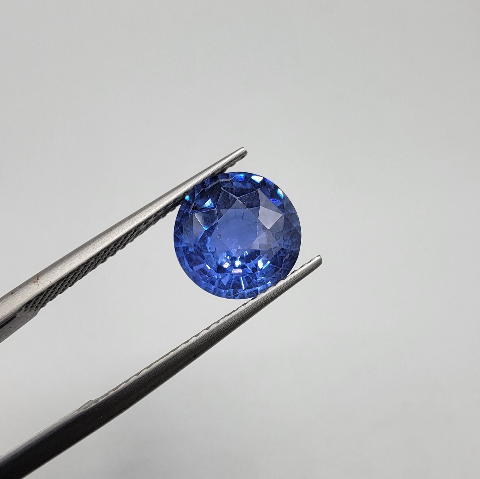 This beautiful Natural Blue Sapphire is a true masterpiece from the prestigious mines of Srilanka (Ceylon). Weighing a precise 3.86 carats, this gemstone boasts a captivating, rich blue color. Expertly cut in a classic round shape, its brilliant facets showcase its radiance. Its impressive size and world-renowned origin make it an exceptional choice for a high-end ring or pendant, or a valuable addition to any gemstone collection.