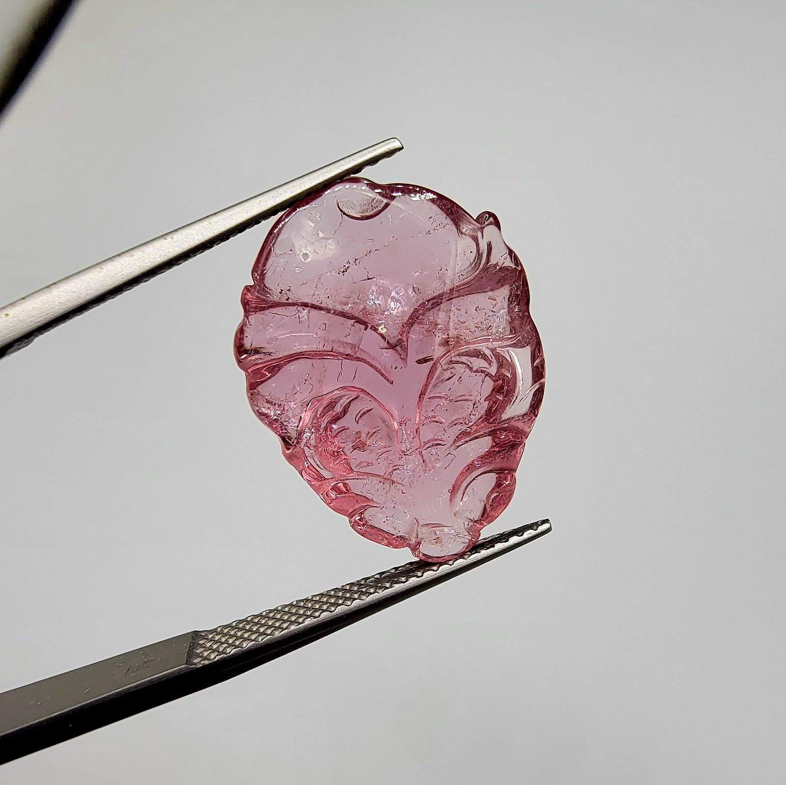 A mesmerizing Natural Carving Tourmaline weighing 10.45 carats, showcasing a delicate hand-carved floral design with an elegant pink hue. Expertly crafted from African-origin rough, this gemstone combines nature’s charm with artisanal beauty—perfect for collectors, jewelry designers, or crystal enthusiasts. Known for promoting love and emotional balance, this tourmaline brings timeless allure and positive energy.
