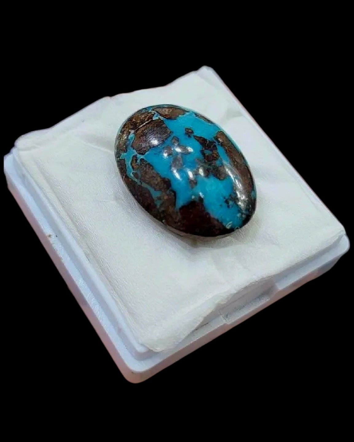 Experience the monumental beauty of the ancient world with this 34.93-carat natural Turquoise from Egypt. This oversized specimen is a rare find from the historic Sinai mines, where the Earth produces a uniquely saturated teal-to-sky blue color. The stone is defined by its dramatic “spiderweb” matrix—an intricate, dark network of veining that covers the surface with artistic precision. Masterfully polished into a massive Oval Cabochon, its substantial weight and striking visual texture make it a premier choice for an elite collector’s showcase or a once-in-a-lifetime statement jewelry piece.