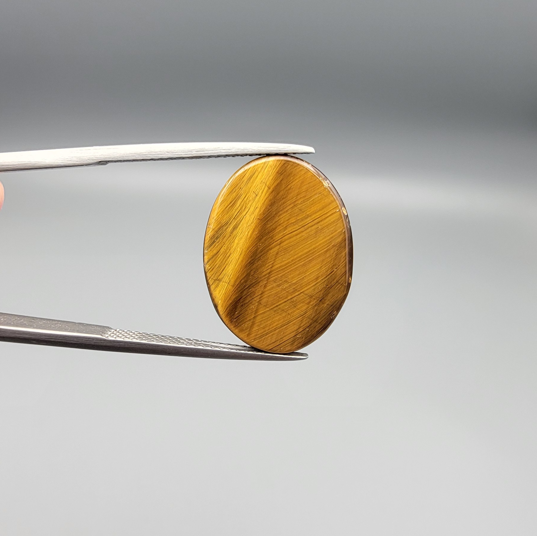 Channel strength and focus with this 15.17-carat Natural Golden Tiger’s Eye. Sourced from the earth and left entirely untreated, this specimen is selected for its superior chatoyancy, producing a vivid light effect that follows the movement of the stone. The Oval Cabochon cut highlights its rich, parallel fibers in shades of amber-gold and dark mahogany. Traditionally used for grounding and clarity, this 15-carat piece is an ideal choice for a custom statement ring, a protective artisan pendant, or a professional gemstone collection.
