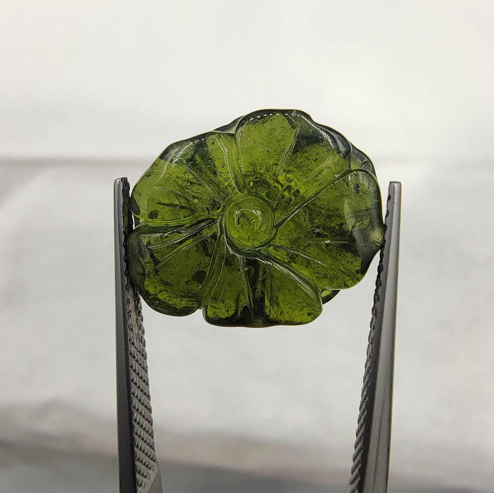 Natural Green Tourmaline – 10.08 Carats Flower Carving – Origin Africa – Hand-Carved Gemstone