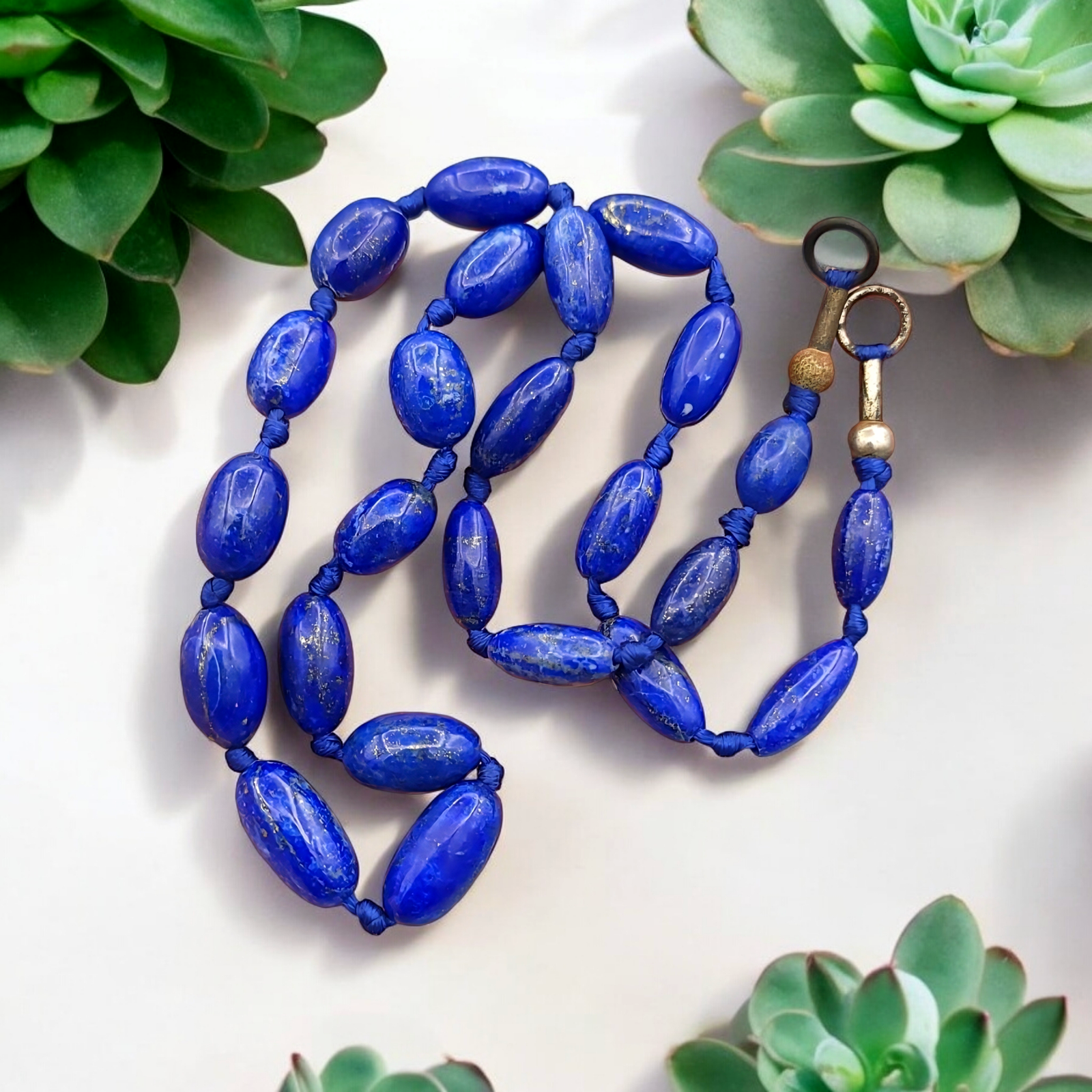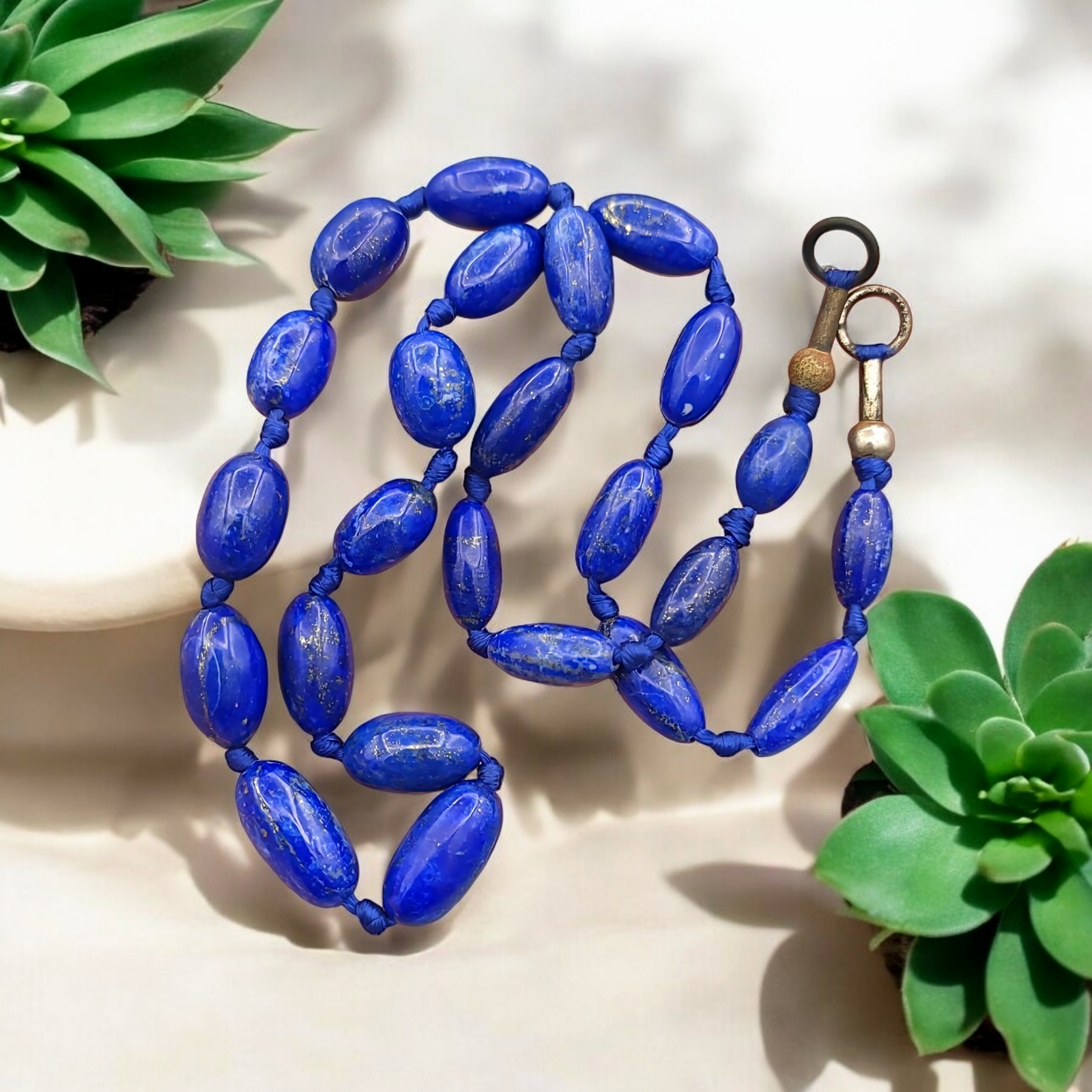 This Natural Lapis Lazuli (Lajward) string weighs 54 grams and comes from the renowned gemstone region of Afghanistan, famous for producing the richest and deepest royal-blue lapis in the world. The beads show a beautiful deep blue tone with natural golden pyrite sparkles, adding elegance and authenticity. Ideal for premium jewelry making, tasbih crafting, necklaces, bracelets, or gemstone collectors who prefer high-quality Afghan stones.