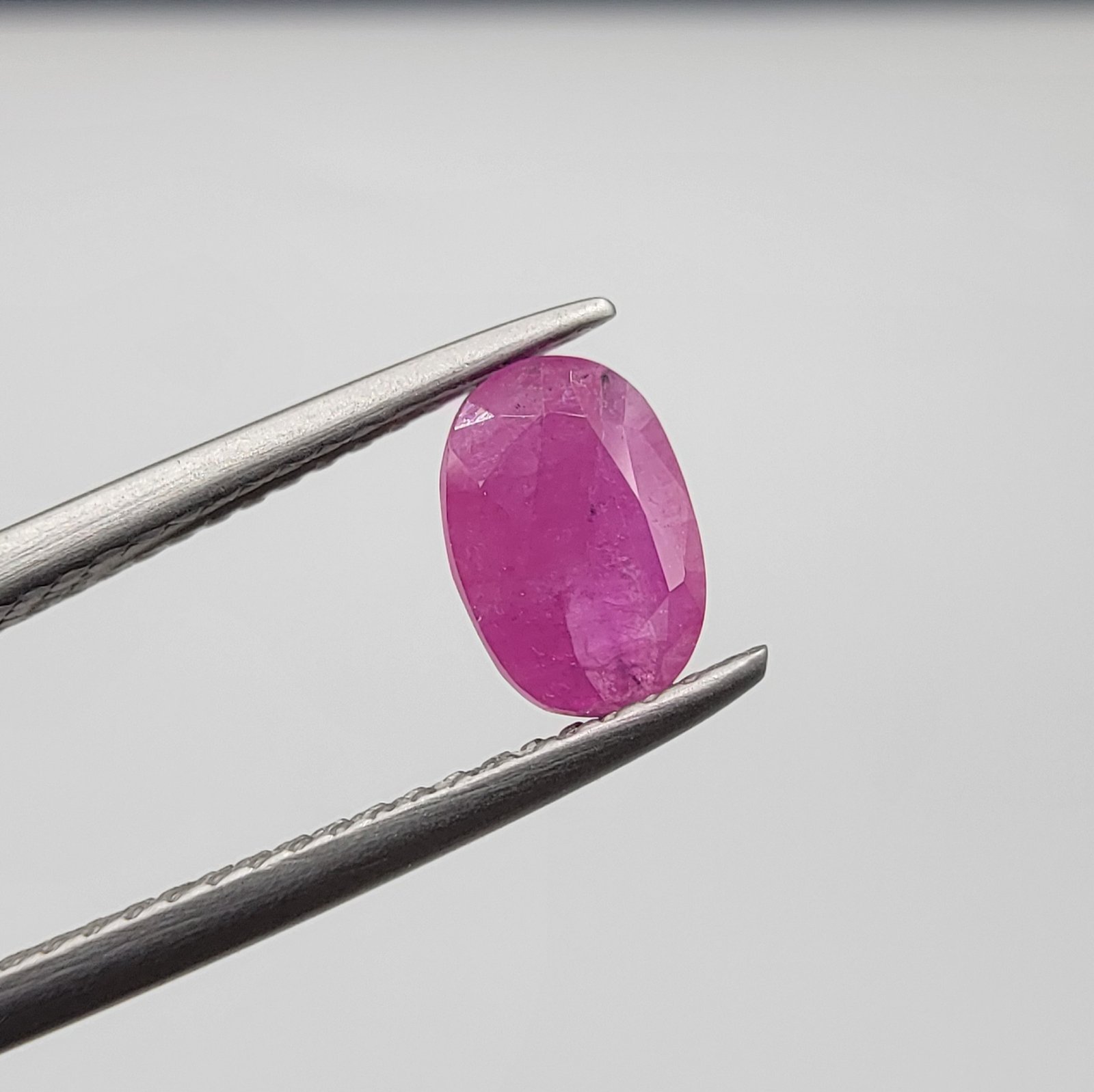 This spectacular Natural Ruby (Corundum) is a highly desirable gemstone from the prestigious mines of Kabul, Afghanistan. Weighing a significant 1.15 carats, this gem is cut in an attractive oval faceted shape. Its appeal lies in its visible natural growth patterns and inclusions, which confirm its organic origin and give it a sought-after raw, natural look. The renowned origin adds immense value and desirability, making this an excellent choice for a custom ring or a serious collector.