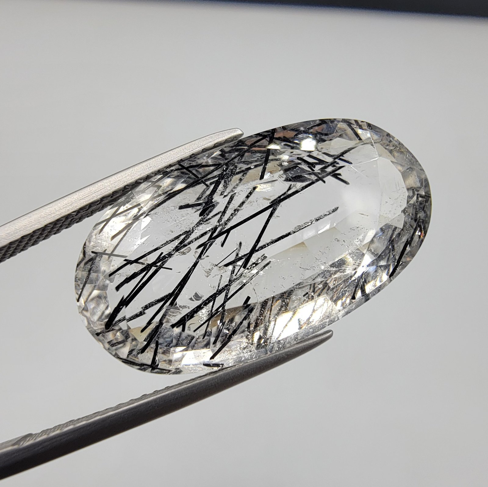 Step into a world where Earth’s raw power is captured in a single, mesmerizing gem. This magnificent 19.59 carat Natural Rutilated Quartz, known in spiritual and local circles as “Moh-E-Najaf” or “Wādī al-Salām stone”, is more than just a stone; it’s a window into the ancient geological forces of Najaf al-Ashraf, Iraq. Revered for centuries, this gemstone features a crystal-clear body of pure quartz, housing striking, needle-like black rutile inclusions that appear like frozen lightning or delicate “black hairs” trapped in ice. This substantial, oval-cut gem is a true collector’s item, offering a unique blend of natural artistry and deep spiritual significance associated with clarity, protection, and divine connection. It is an exceptionally rare find for those seeking a one-of-a-kind statement piece or a powerful talisman.