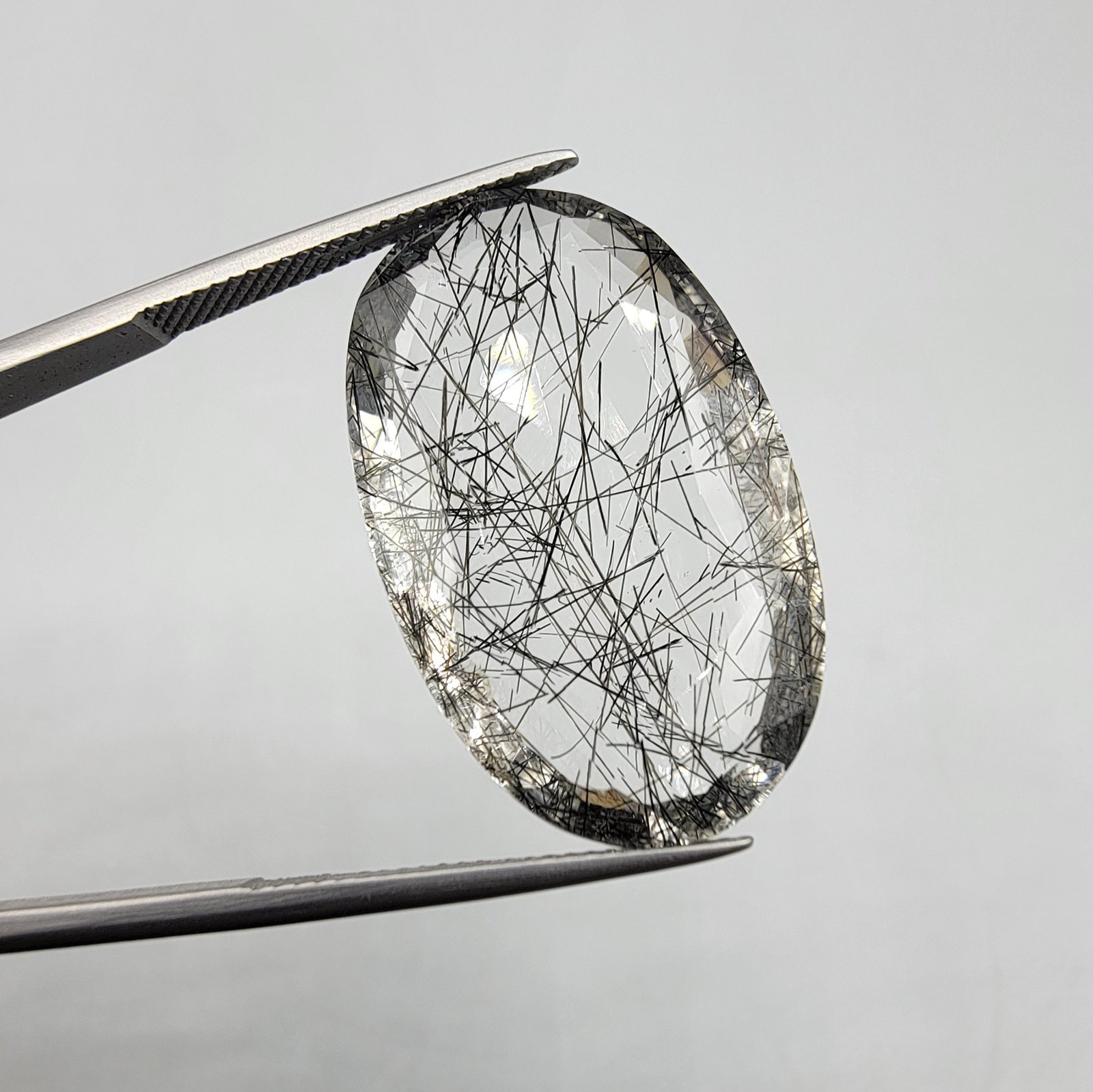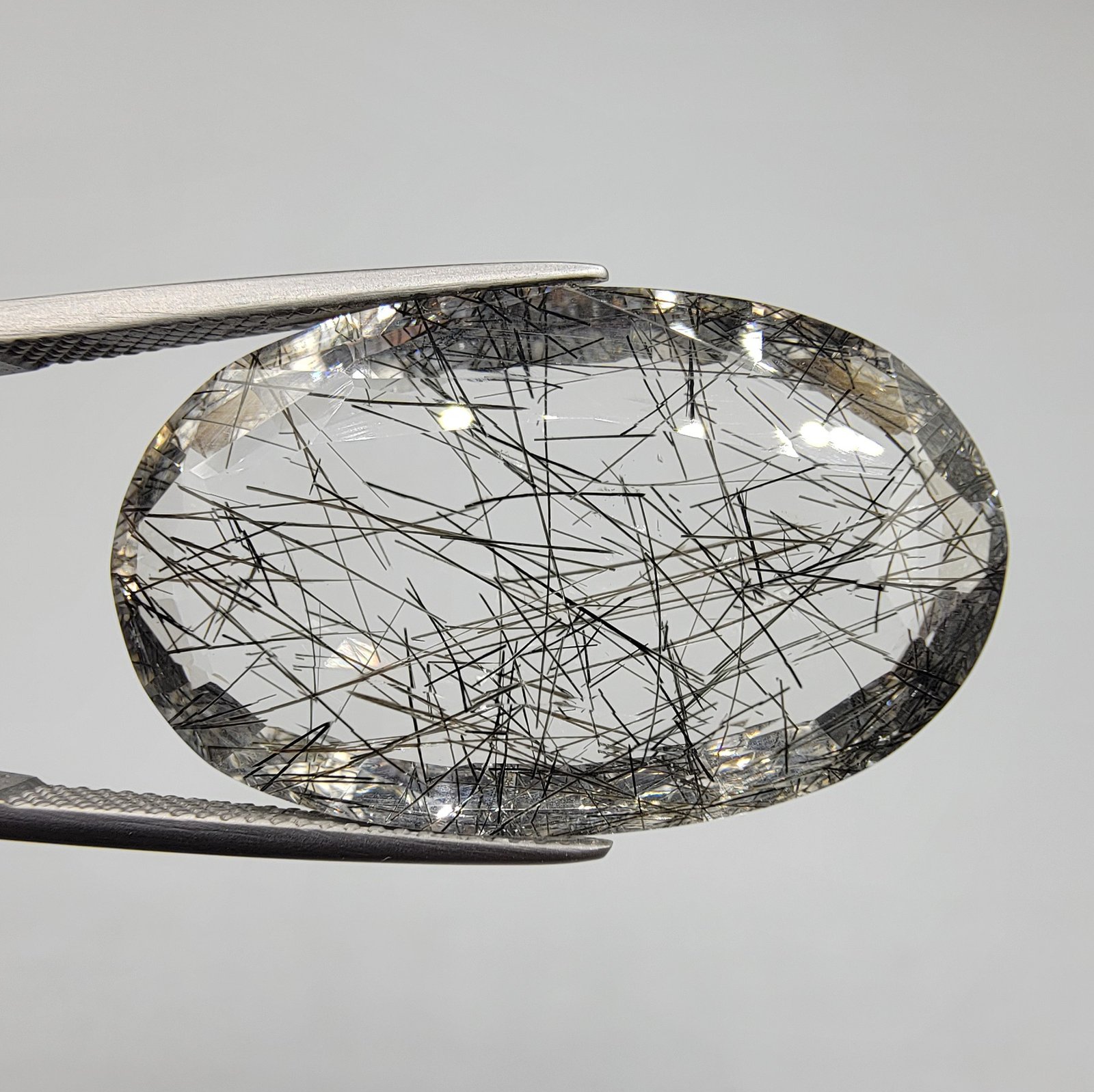 Step into a world where Earth’s raw power is captured in a single, mesmerizing gem. This magnificent 34 carat Natural Rutilated Quartz, known in spiritual and local circles as “Moh-E-Najaf” or “Wādī al-Salām stone”, is more than just a stone; it’s a window into the ancient geological forces of Najaf al-Ashraf, Iraq. Revered for centuries, this gemstone features a crystal-clear body of pure quartz, housing striking, needle-like black rutile inclusions that appear like frozen lightning or delicate “black hairs” trapped in ice. This substantial, oval-cut gem is a true collector’s item, offering a unique blend of natural artistry and deep spiritual significance associated with clarity, protection, and divine connection. It is an exceptionally rare find for those seeking a one-of-a-kind statement piece or a powerful talisman.