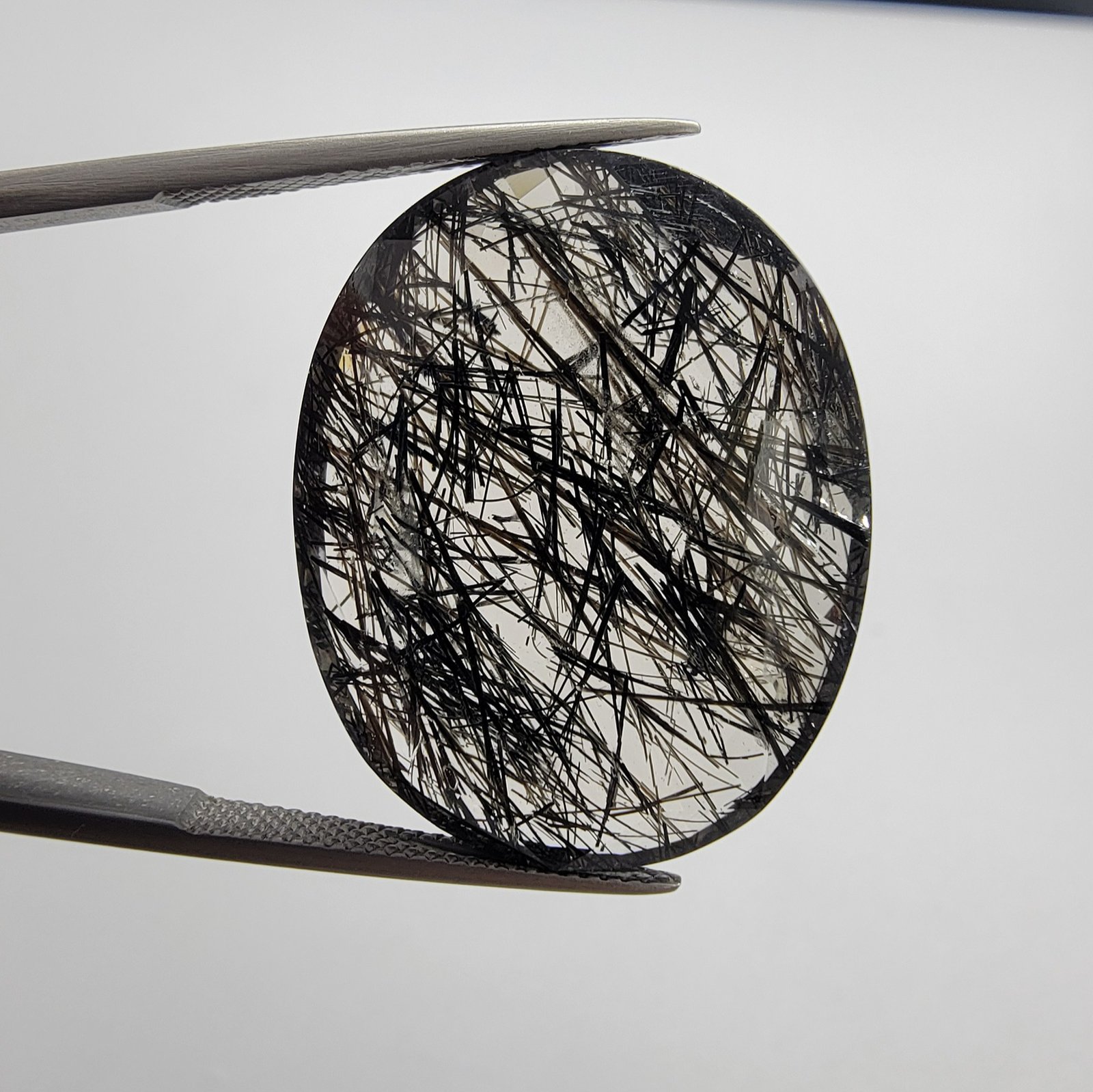 Step into a world where Earth’s raw power is captured in a single, mesmerizing gem. This magnificent 42.08 carat Natural Rutilated Quartz, known in spiritual and local circles as “Moh-E-Najaf” or “Wādī al-Salām stone”, is more than just a stone; it’s a window into the ancient geological forces of Najaf al-Ashraf, Iraq. Revered for centuries, this gemstone features a crystal-clear body of pure quartz, housing striking, needle-like black rutile inclusions that appear like frozen lightning or delicate “black hairs” trapped in ice. This substantial, oval-cut gem is a true collector’s item, offering a unique blend of natural artistry and deep spiritual significance associated with clarity, protection, and divine connection. It is an exceptionally rare find for those seeking a one-of-a-kind statement piece or a powerful talisman.