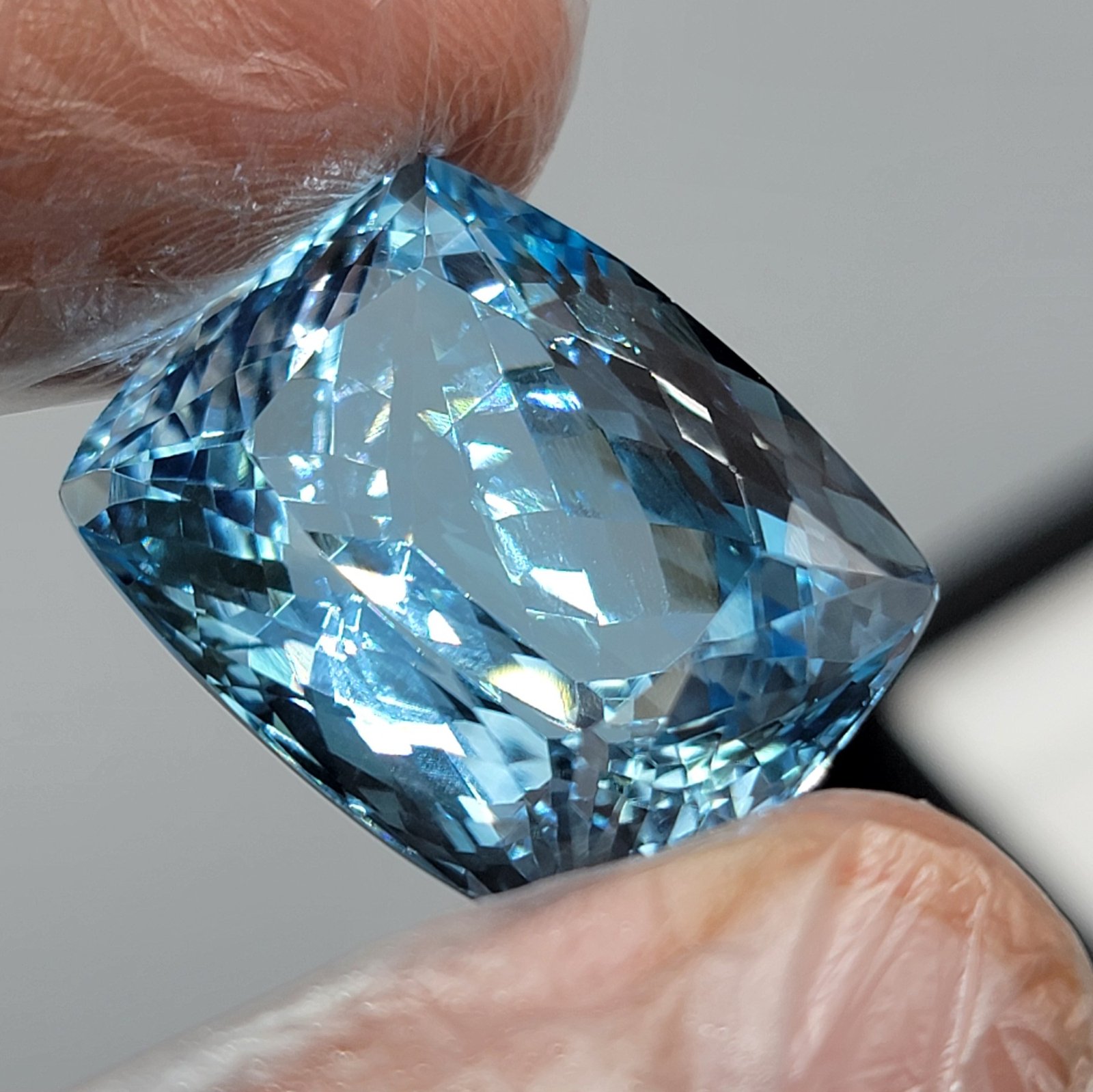This Natural Sky Blue Topaz weighs an impressive 51.39 carats and is expertly shaped in a rare rectangular cushion mixed cut. Its vibrant sky-blue color radiates brilliance, enhanced by precision faceting that captures light from every angle. Boasting exceptional transparency and an eye-clean surface, it is 100% natural and untreated. Known for symbolizing clarity, calmness, and truth, Sky Blue Topaz is ideal for statement rings, pendants, or collector’s pieces. Its large size, premium quality, and unique cut make it highly desirable for jewelers and gemstone enthusiasts worldwide. Perfect for those seeking elegance, rarity, and lasting beauty in one remarkable stone.