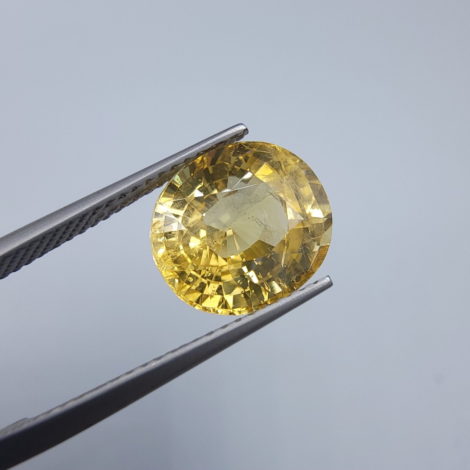 This stunning Natural Yellow Sapphire is a true masterpiece from the prestigious mines of Srilanka (Ceylon). Weighing a precise 6.19 carats, this gemstone boasts a beautiful yellow color. Expertly cut in a classic Oval Faceted cut, its brilliant facets showcase its radiance. The accompanying AIG Laboratory Certificate confirms no indication of heat treatment, making it a particularly valuable addition to any collection or a magnificent centerpiece for a piece of fine jewelry.