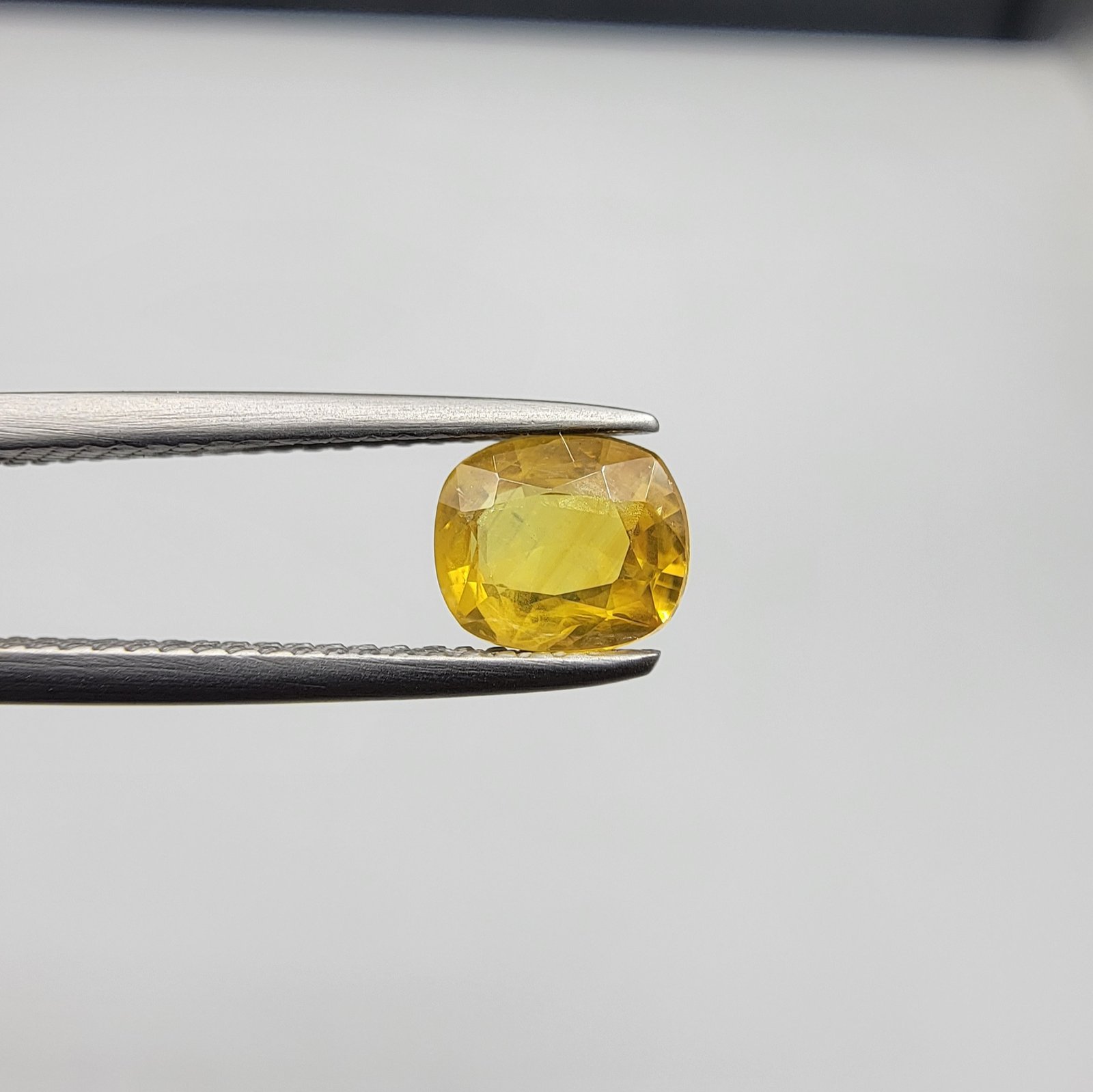A stunning Natural Yellow Sapphire (Pukhraj) from Madagascar, weighing 0.91 carat, this gemstone radiates a vivid golden-yellow brilliance with fine clarity and excellent cushion cutting. Its warm hue captures light beautifully, symbolizing wisdom, prosperity, and spiritual energy. Ideal for rings, pendants, or collectors seeking an elegant and meaningful gemstone, this Madagascar sapphire is a true treasure for both beauty and significance.