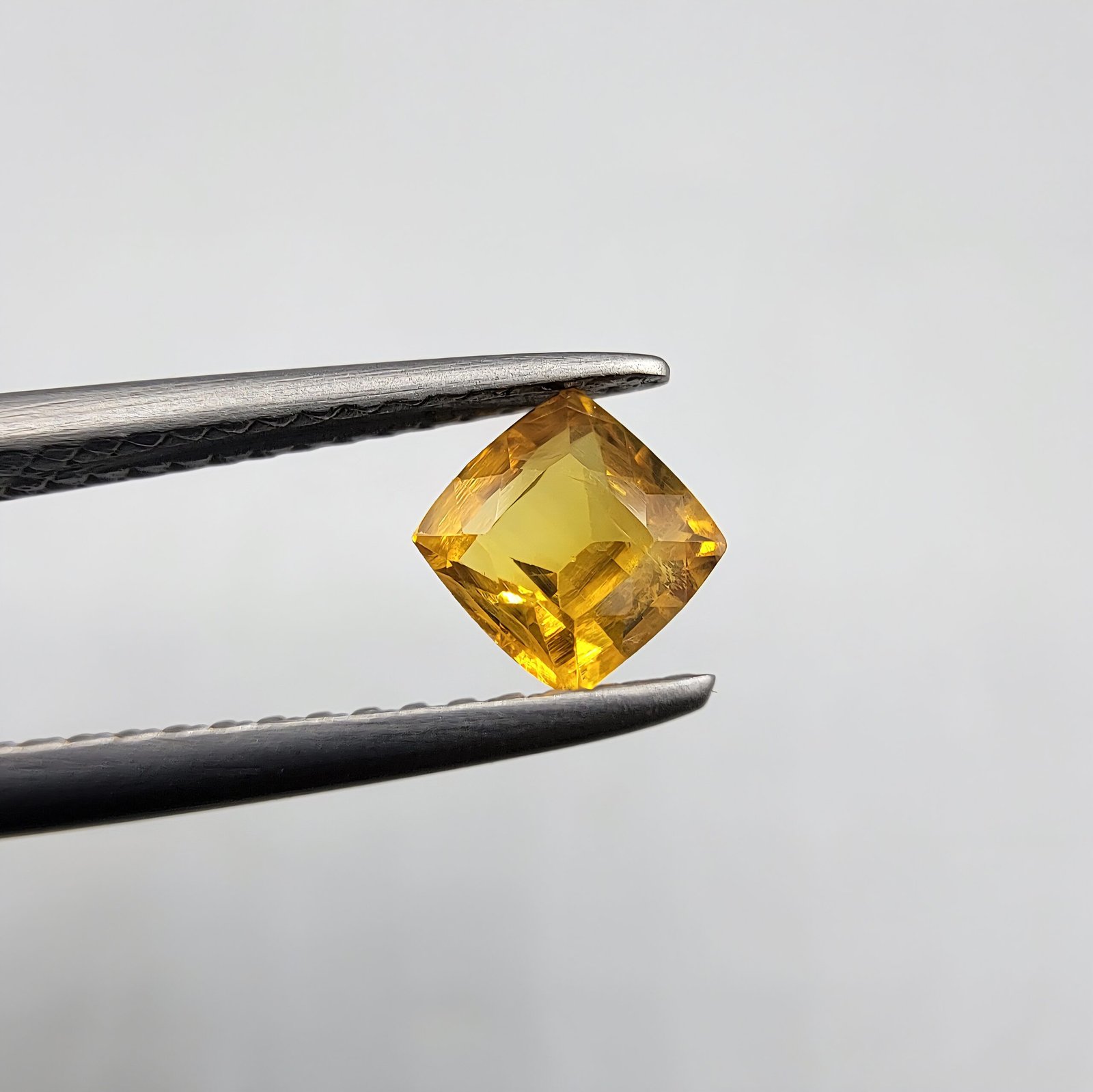 An original 0.69 carat natural yellow sapphire gemstone, prized as Pukhraj or Pushparaj in the subcontinent. This vibrant yellow specimen is sourced from the mines of Madagascar, an origin known for unique and high-quality sapphires. It features a brilliant square/cushion cut which maximizes its bright color and transparency. Find the best Pukhraj stone price in Karachi, Pakistan for this authentic piece.