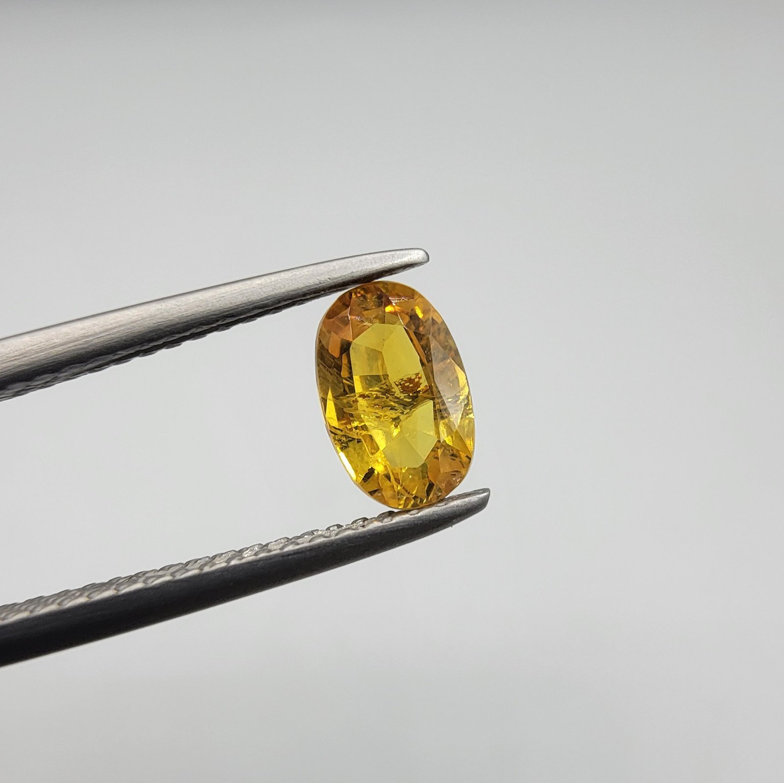 An original 0.77 carat natural yellow sapphire gemstone, prized as Pukhraj or Pushparaj in the subcontinent. This vibrant yellow specimen is sourced from the mines of Madagascar, an origin known for unique and high-quality sapphires. It features a classic oval cut which highlights its bright color and transparency. Find the best Pukhraj stone price in Karachi, Pakistan for this authentic piece.